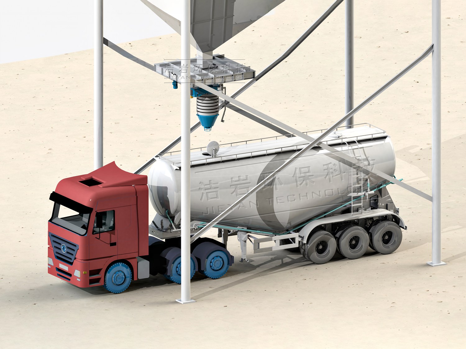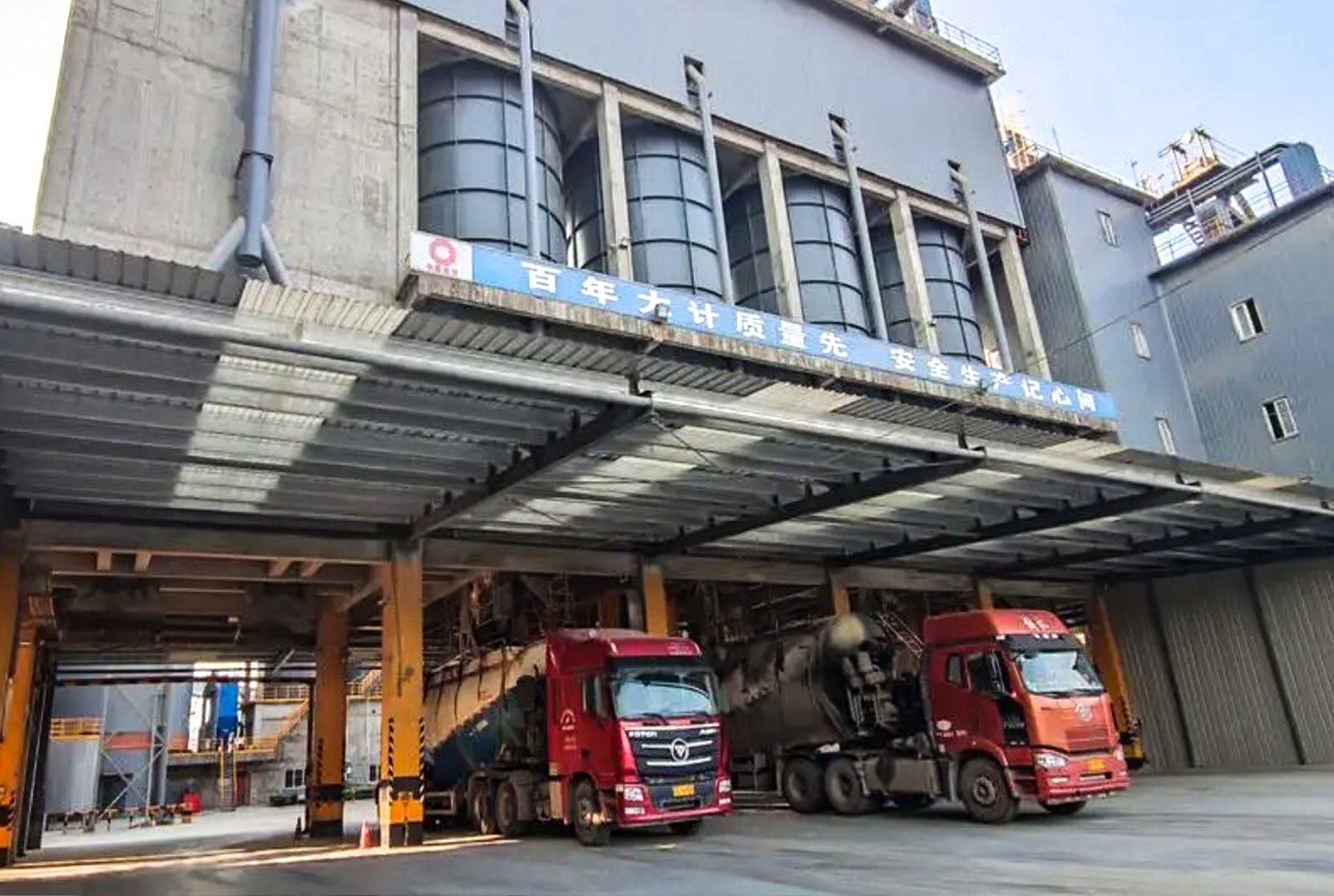 水泥廠使用干灰散裝機將水泥熟料或成品水泥裝入散裝運輸車,以供應給混凝土攪拌站或其他建筑工地,提高物流裝載效率。