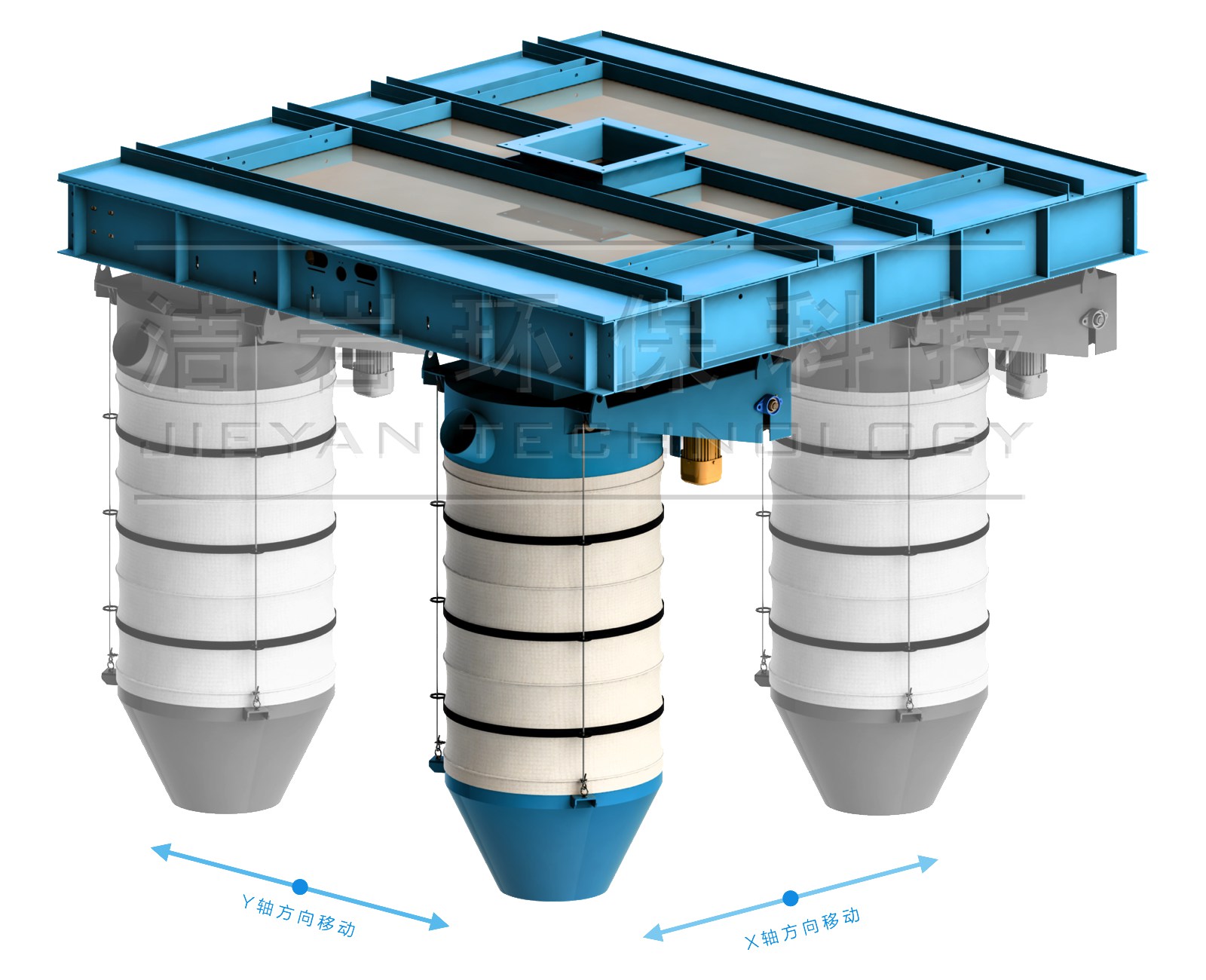 PLC系統(tǒng)通過對比現(xiàn)有散裝機位置信息,計算出散裝機需要行走的方向和距離,并控制前后(Y軸)左右(X軸)移動機構,精確控制整個機體的移動方向和速度,確保散裝機的下料口能夠平滑、迅速地移動到目標罐口上方;經(jīng)過視覺系統(tǒng)再次計算罐口坐標,比對散裝機位置和罐口坐標,確認無誤后,PLC系列控制散裝機下落,對準罐口,保證定位誤差不超過±5mm;散裝機和罐口對接完成后,定位系統(tǒng)向業(yè)主中控系統(tǒng)反饋“就位完成”信號;業(yè)主中控系統(tǒng)可依據(jù)此信號采取相應的后續(xù)操作。